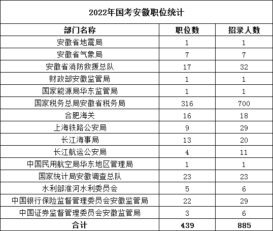 點(diǎn)擊下載查看:2022國(guó)考安徽地區(qū)職位表(439崗位 招885人)