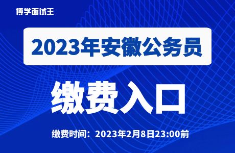 2023安徽公務(wù)員考試公告于1月18日發(fā)布,共招錄7256人。本次報(bào)名采取網(wǎng)上報(bào)名的方式進(jìn)行(涉密等特殊職位除外)。報(bào)名時(shí)間為2023年1月30日9:00至2月5日23:00。報(bào)名網(wǎng)站為安徽省人事考試網(wǎng)(www.apta.gov.cn)。通過資格審查的報(bào)考者于2月8日23:00前登錄安徽省人事考試網(wǎng)通過第三方支付平臺(易寶)繳納筆試費(fèi)用。未按時(shí)繳費(fèi)的,視為放棄報(bào)名。(>>>繳費(fèi)入口)