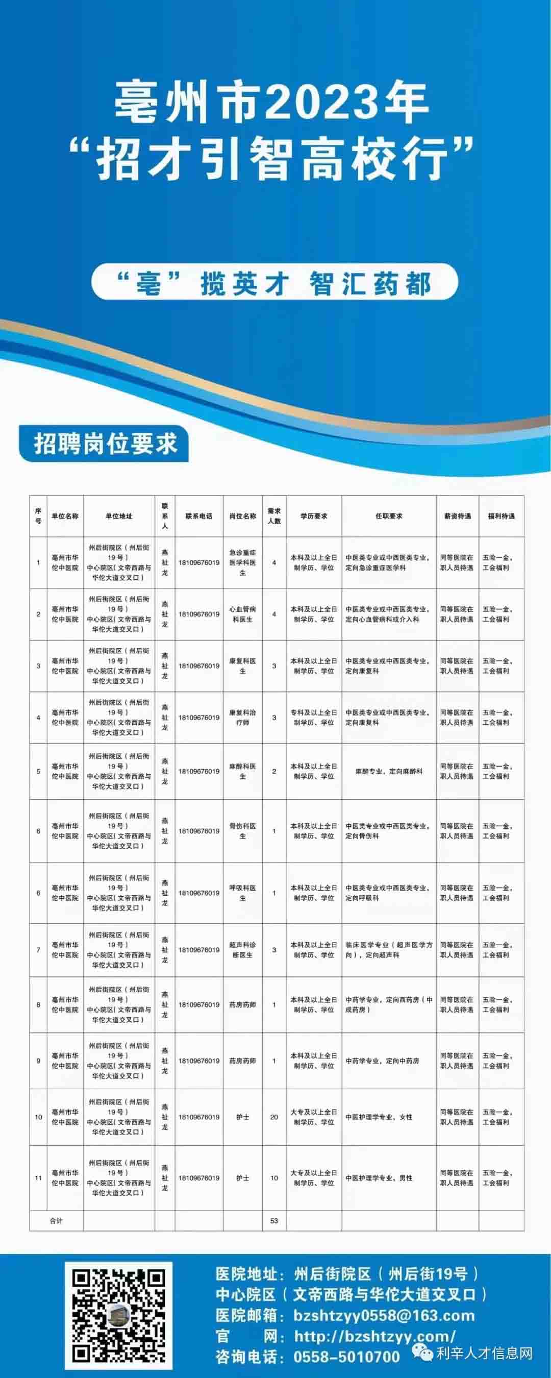 2023亳州市華佗中醫(yī)院招聘53人公告