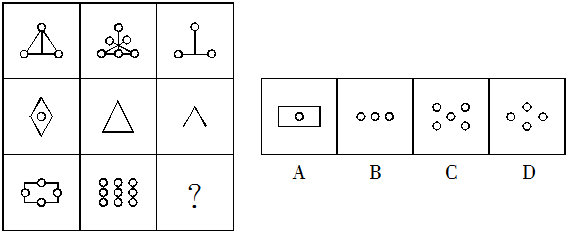 1.【答案】A。解析:每行或每列三個(gè)圖形的對(duì)稱軸各有0、1、2條,應(yīng)選擇有1條對(duì)稱軸的圖形,A符合。