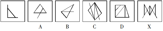 1.A、B、C、D中哪個(gè)與X圖形互換位置后,新的六個(gè)圖形序列能形成一定的規(guī)律?