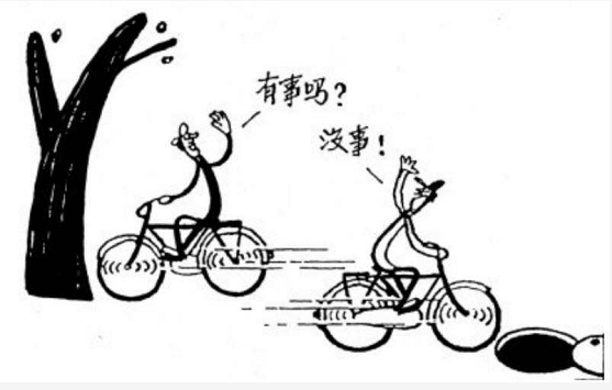 1、漫畫(huà)題:(兩個(gè)相反方向騎自行車的人,而且都飛快,然后一個(gè)人回頭問(wèn)有事沒(méi),另一個(gè)人回答沒(méi)事,結(jié)果一方前邊兒是一棵樹(shù),另一方前面是一口井。)請(qǐng)給漫畫(huà)起兩個(gè)標(biāo)題,并就其中一個(gè)結(jié)合社會(huì)現(xiàn)象談一談。
