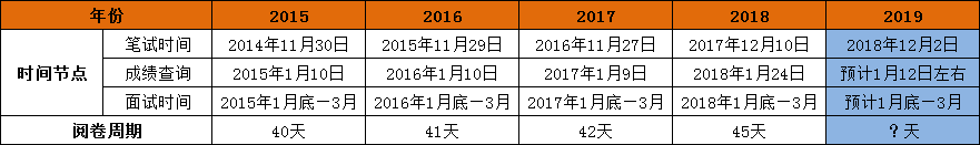 2019國家公務(wù)員考試筆試已于12月2日結(jié)束,那么,2019國考成績什么時候出呢?按照以往國考成績查詢時間預(yù)測2019國考成績查詢時間將在2019年1月中下旬左右,在此,小編附上歷年國家公務(wù)員考試成績查詢時間,希望能幫助各位考生做好面試備考的準(zhǔn)備。